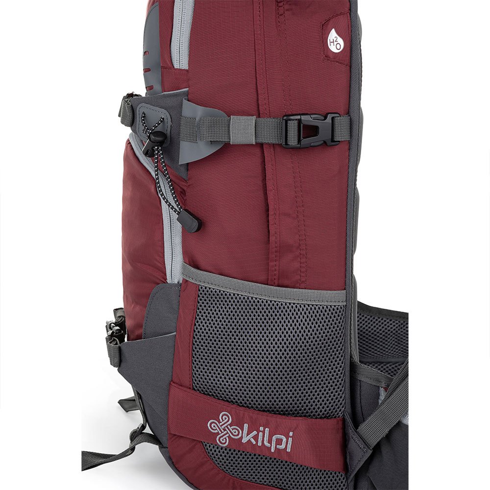 Há um bolso acolchoado para óculos na frente e bolsos de malha nas laterais para uma garrafa de 1 litro.