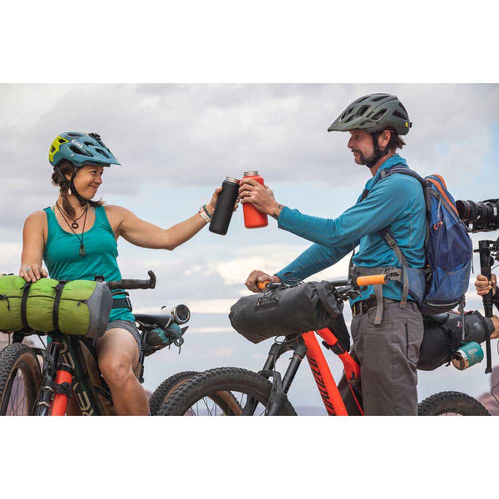 A garrafa de água é a favorita dos mochileiros e entusiastas do ar livre por causa de seu tamanho grande, construção leve de parede única e boca larga.
