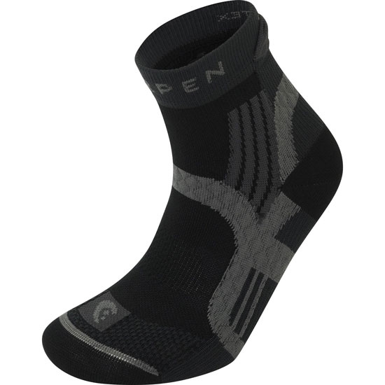 Desempenho máximo do T3 agora combinado com a tecnologia SLS . A combinação de ambos resulta em uma meia totalmente reforçada e muito resistente que mantém o pé fresco e protegido durante os dias de corrida em trilha.
