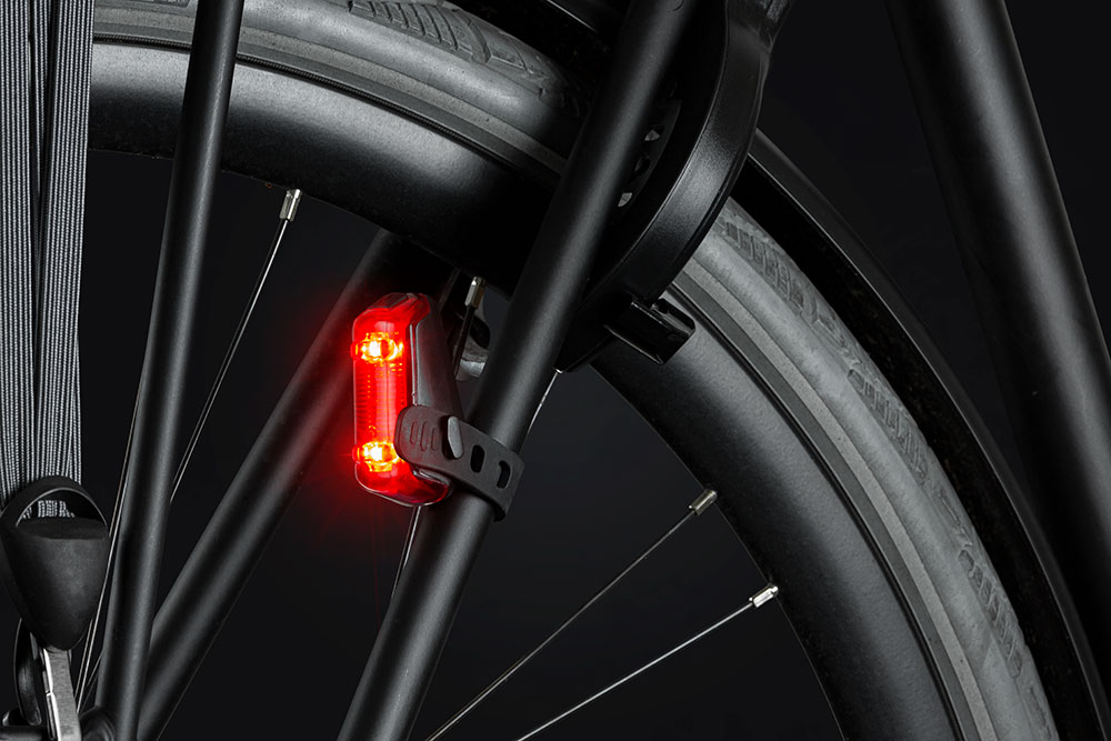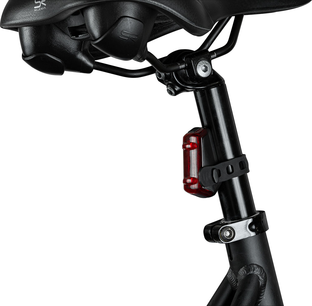 A AXA Dwn Rear é uma luz traseira potente e amiga do ambiente para bicicletas. Com sua função de carregamento USB e alça de fixação de borracha flexível para montagem, é adequado para quase todas as bicicletas. A luz pode ser fixada no canote ou na escora do assento e é rápida e fácil de instalar. Com um alcance de luz de até 300 metros, você está seguro na estrada.