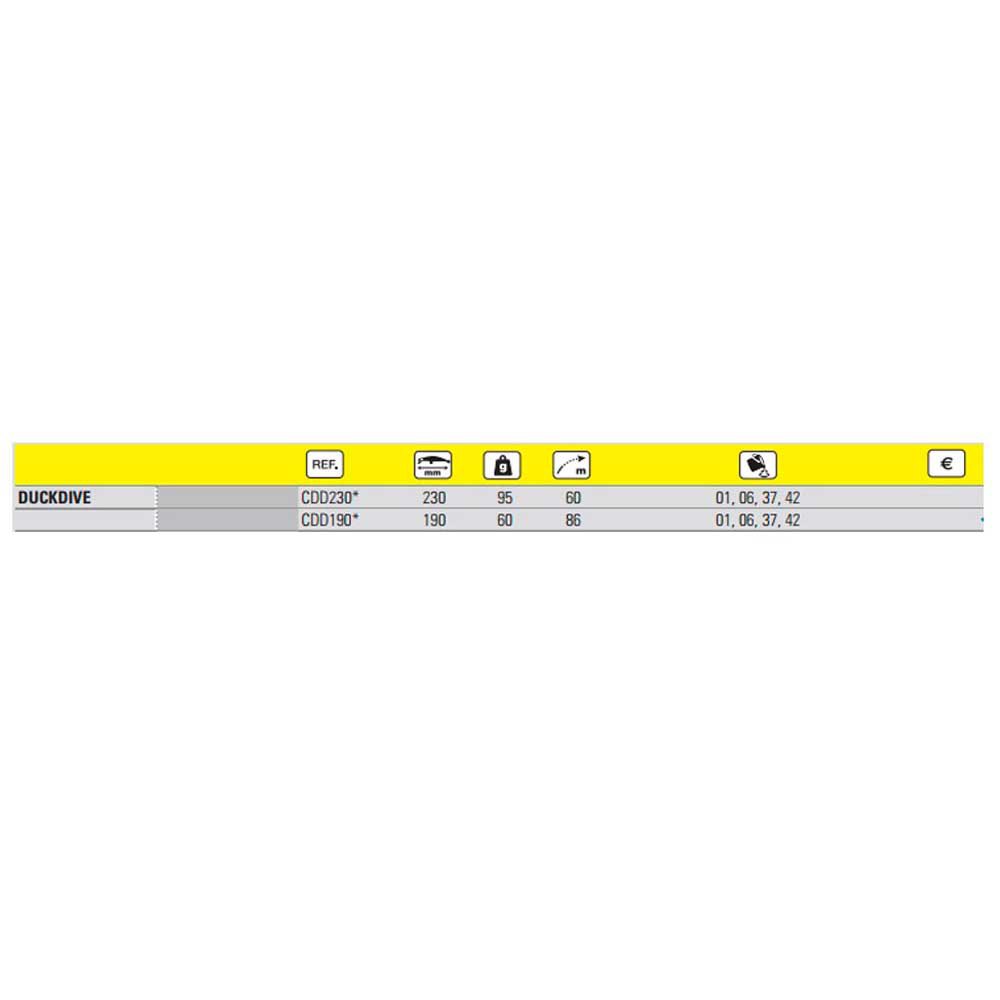Este poderoso popper para a pesca de grandes atuns e espécies tropicais é uma arma letal, graças à sua grande capacidade de Lance (chega a 60 metros) e à sua posição de repouso na água, praticamente paralela à superfície, com a popa ligeiramente mais baixa.