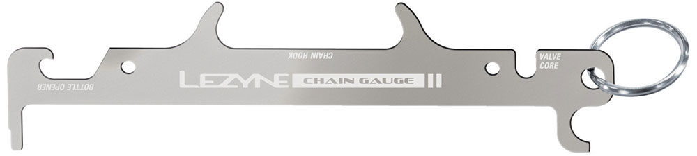 Sensível e elegante, o Lezyne Chain Gauge é um verificador de corrente de bicicleta multifuncional com um gancho de corrente integrado e indicador de desgaste, bem como uma ferramenta útil para remoção do núcleo da válvula. Compatível com a maioria das correntes de bicicleta de 5 a 12 velocidades e usinado com precisão para precisão superior, o Chain Gauge é uma apólice de seguro de aço inoxidável contra desgaste prematuro do sistema de transmissão.