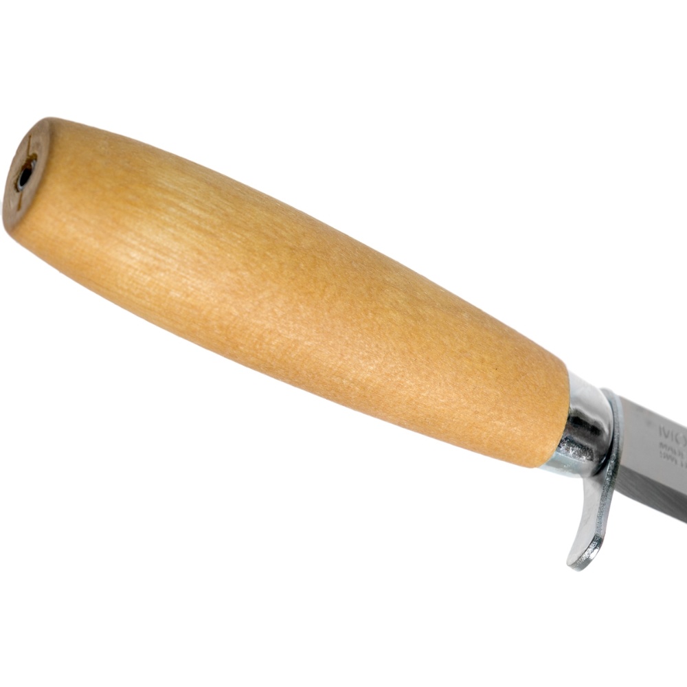 A faca Rookie é uma das populares facas Morakniv Scout. Este novo modelo possui ponta ainda mais arredondada para aumentar ainda mais a segurança. Juntamente com a proteção para os dedos – que evita que os dedos escorreguem para a lâmina – o Rookie é uma faca de entrada adequada para talha infantil. A lâmina é feita de aço inoxidável de alta qualidade, que passou por tratamento, teste e avaliação completos na fábrica da Morakniv. A pequena alça em forma de barril é um bom tamanho para as mãos das crianças e a madeira natural é muito agradável de segurar e trabalhar. Uma bainha de polímero preto mantém a faca e seu usuário em segurança quando a faca não está em uso. Lembre-se de sempre vigiar cuidadosamente as crianças quando estão usando facas.