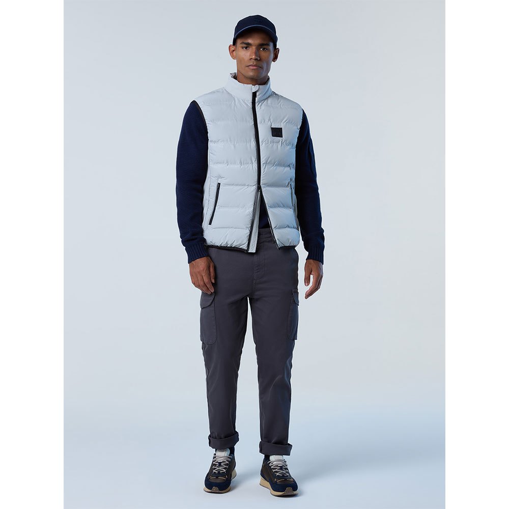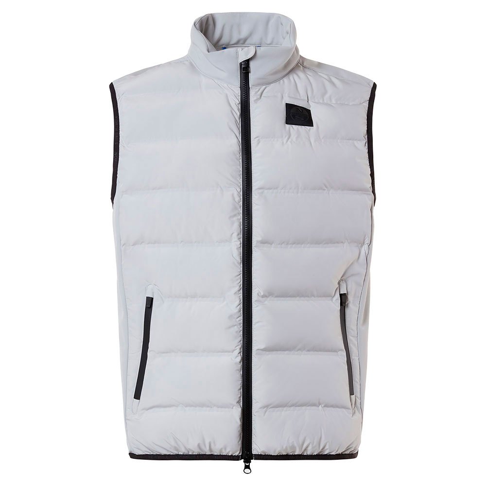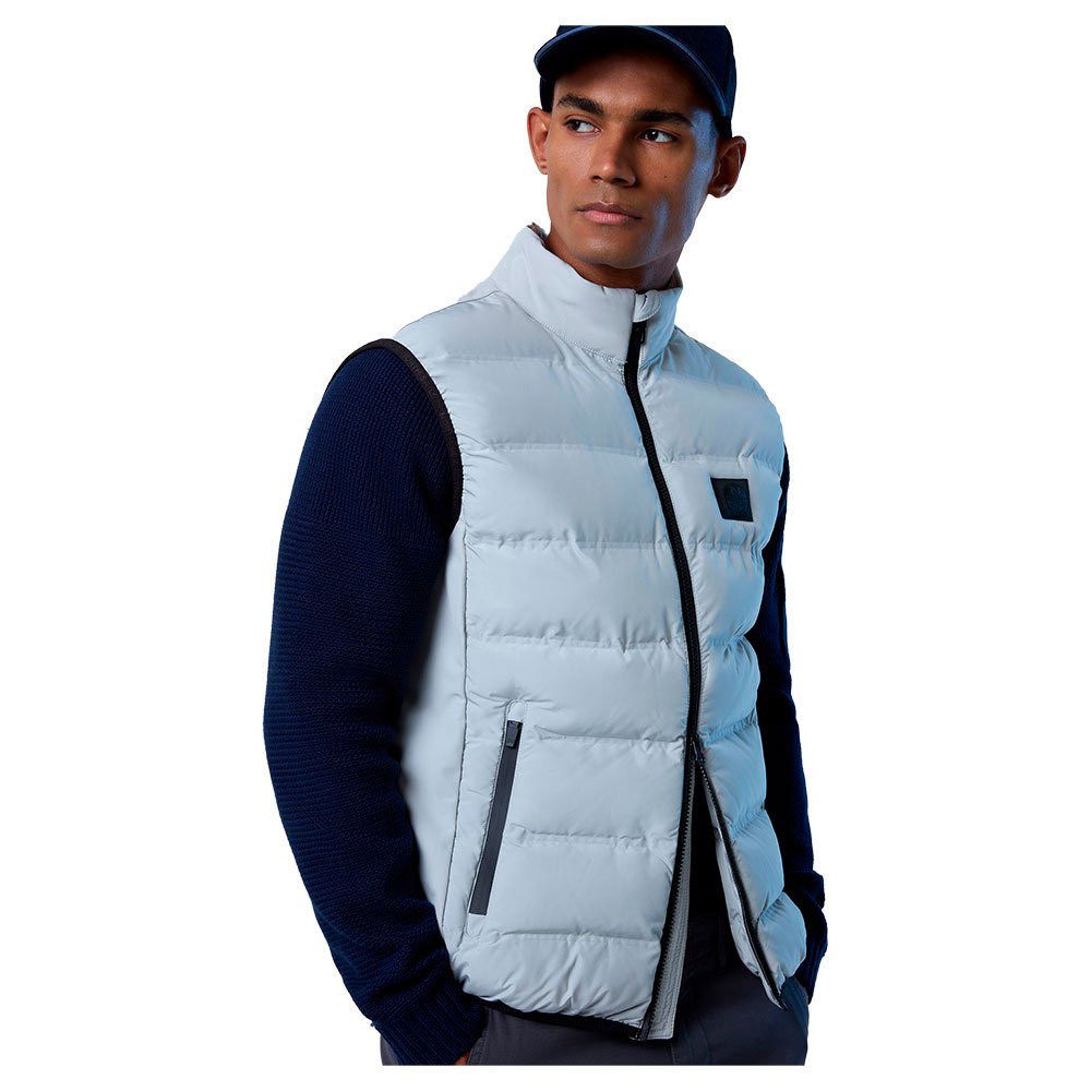 O colete North Tech para homens combina uma frente de nylon acolchoado ultraleve com uma parte traseira em softshell, feito de fibras recicladas e isolado com enchimento Repreve feito de garrafas plásticas recicladas para manter o lixo longe dos aterros sanitários e de nossos preciosos oceanos.