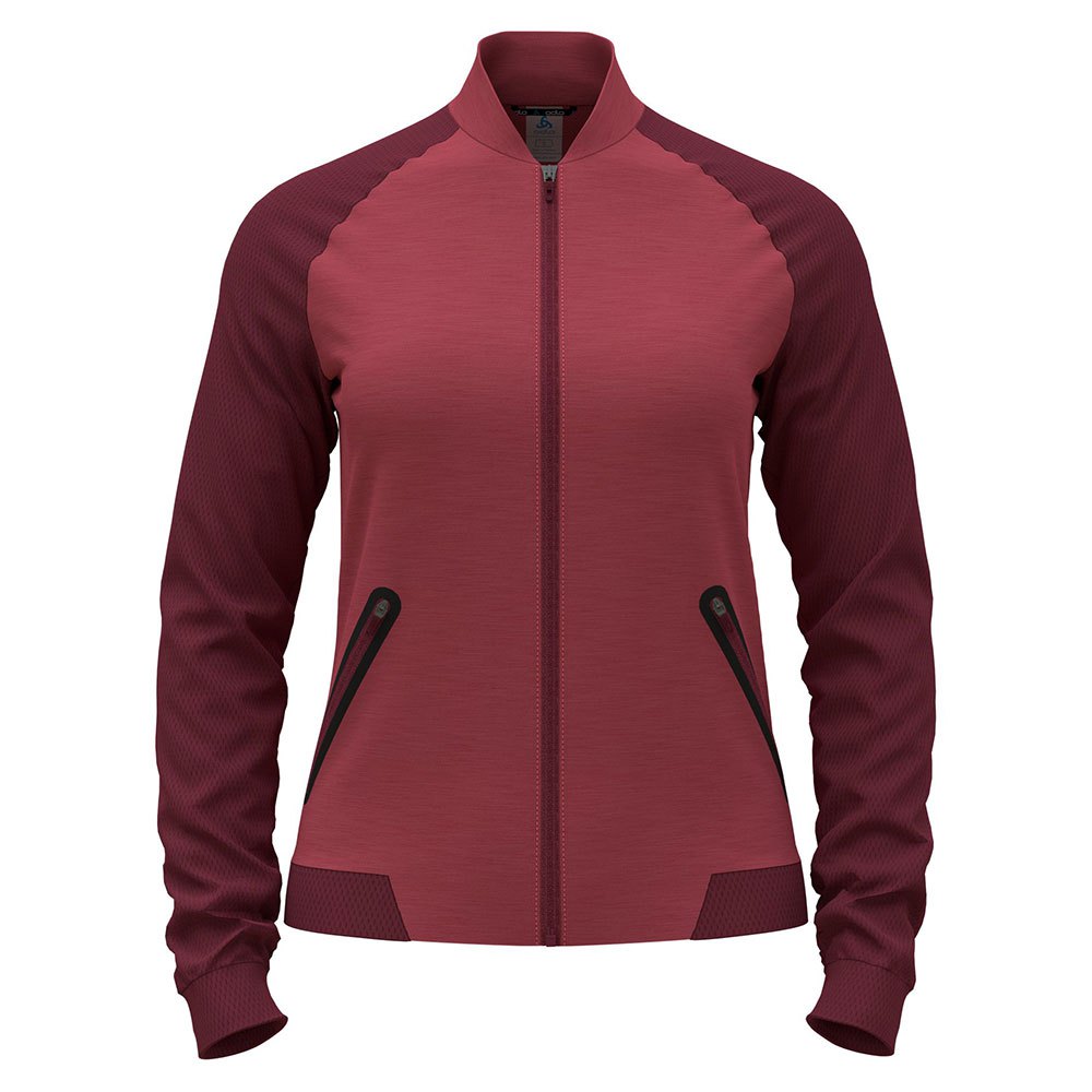Confeccionada em tecido polar super macio com espaçador, esta camada intermediária leve apresenta dois bolsos com zíper colados e uma gola estilo bomber.