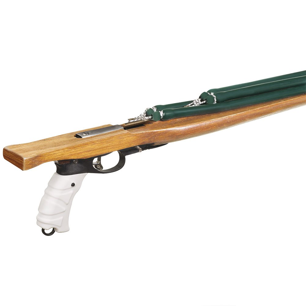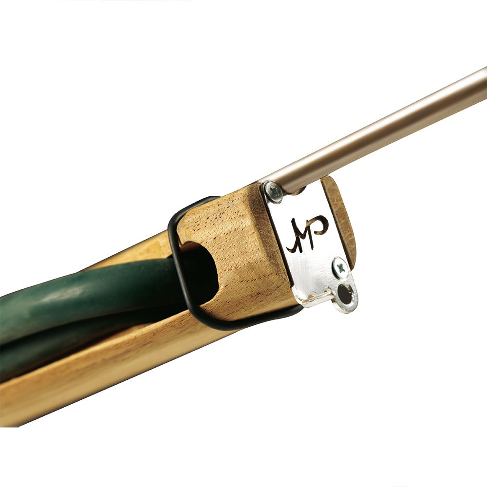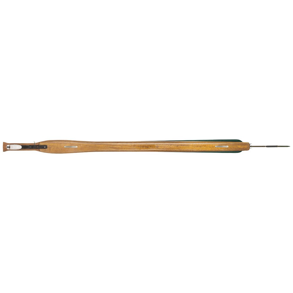 Este arpão para pesca foi desenhado com madeira Teka e um revestimento especial que o protege da corrosão. A alça oferece uma pegada firme e ergonômica na água. O mecanismo de gatilho possui aço inoxidável que torna o disparo suave e reduz o atrito.
