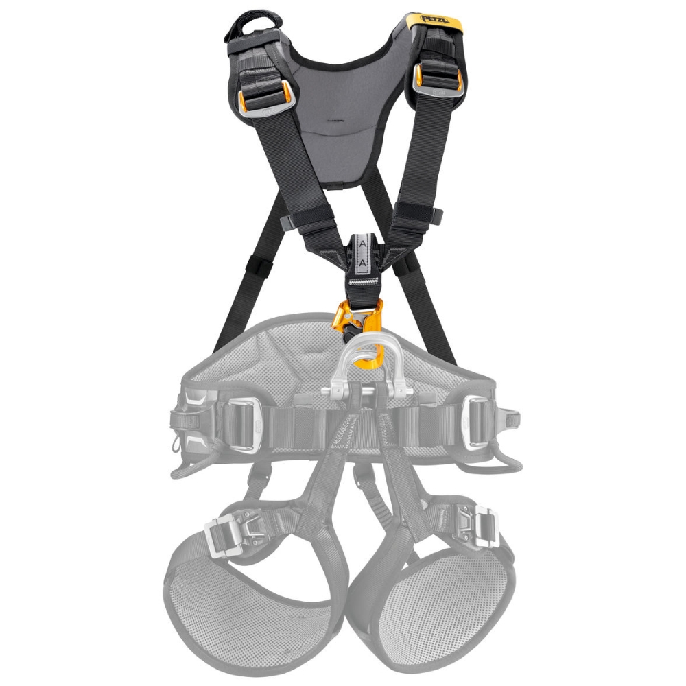 O torso TOP CROLL integra um grampo ventral CROLL S para transformar os cintos de segurança ASTRO SIT FAST, AVAO SIT, AVAO SIT FAST, FALCON, FALCON ASCENT e SEQUOIA SRT em cintos de difícil acesso. O ponto de fixação esternal têxtil otimiza o peso e o volume. As alças acolchoadas são separadas para limitar o atrito no pescoço. Quando uma carga é transportada no cinto, as alças suportam essa carga e a distribuem pelos ombros. A conexão traseira em ambos os lados da correia oferece excelente estabilidade.