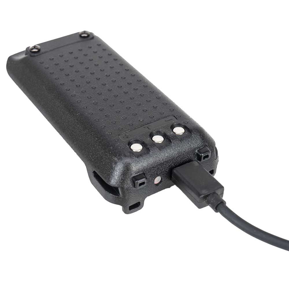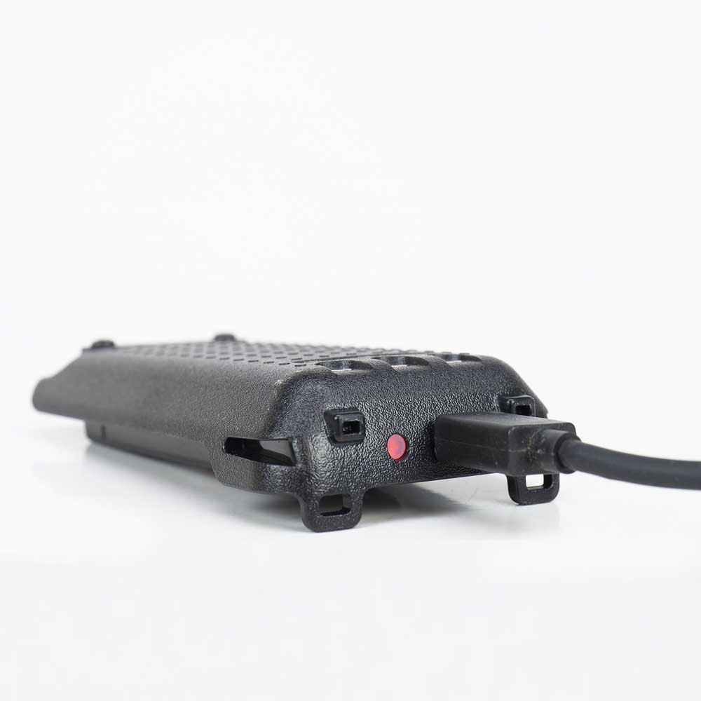 A bateria PNI PB P15 Li Ion está equipada com uma porta USB tipo C para carregamento direto da bateria com um adaptador de 230V. O LED indicador comunica o status da carga: LED vermelho carregando em andamento, LED verde carga completa. Além disso, a bateria pode ser carregada através da base de carregamento que acompanha a estação PNI PMR R15UV.