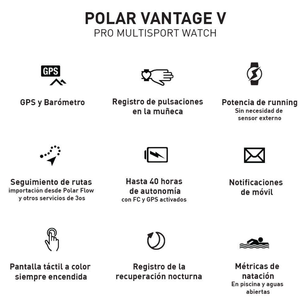 Este relógio multiesportivo Premium criado para atletas profissionais e para aqueles que desejam alcançar esses níveis. Este modelo é ideal para a prática de atividades como triatlo ou maratona devido à sua capacidade de imersão. Outros recursos incluídos no dispositivo são a tecnologia Polar Precision Prime, que monitora a freqüência cardíaca mesmo nas condições mais exigentes.