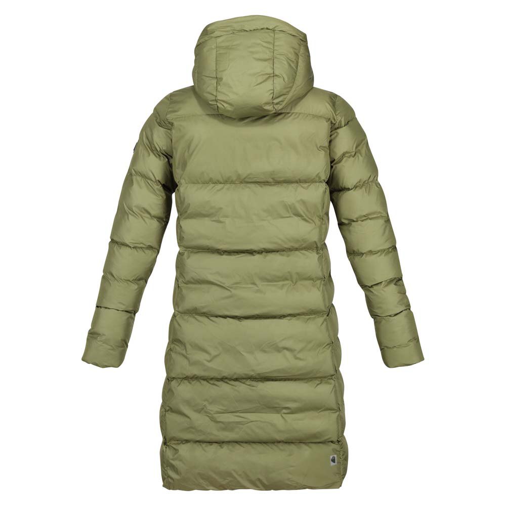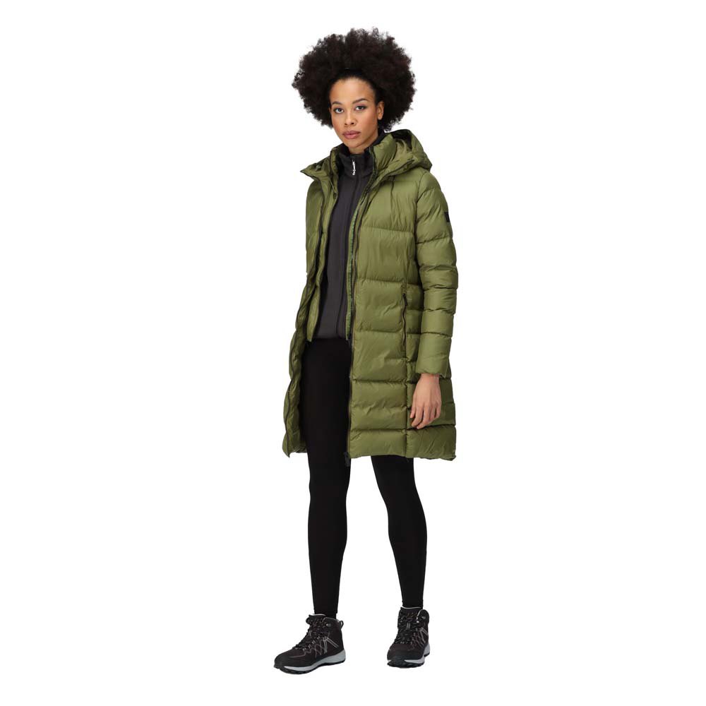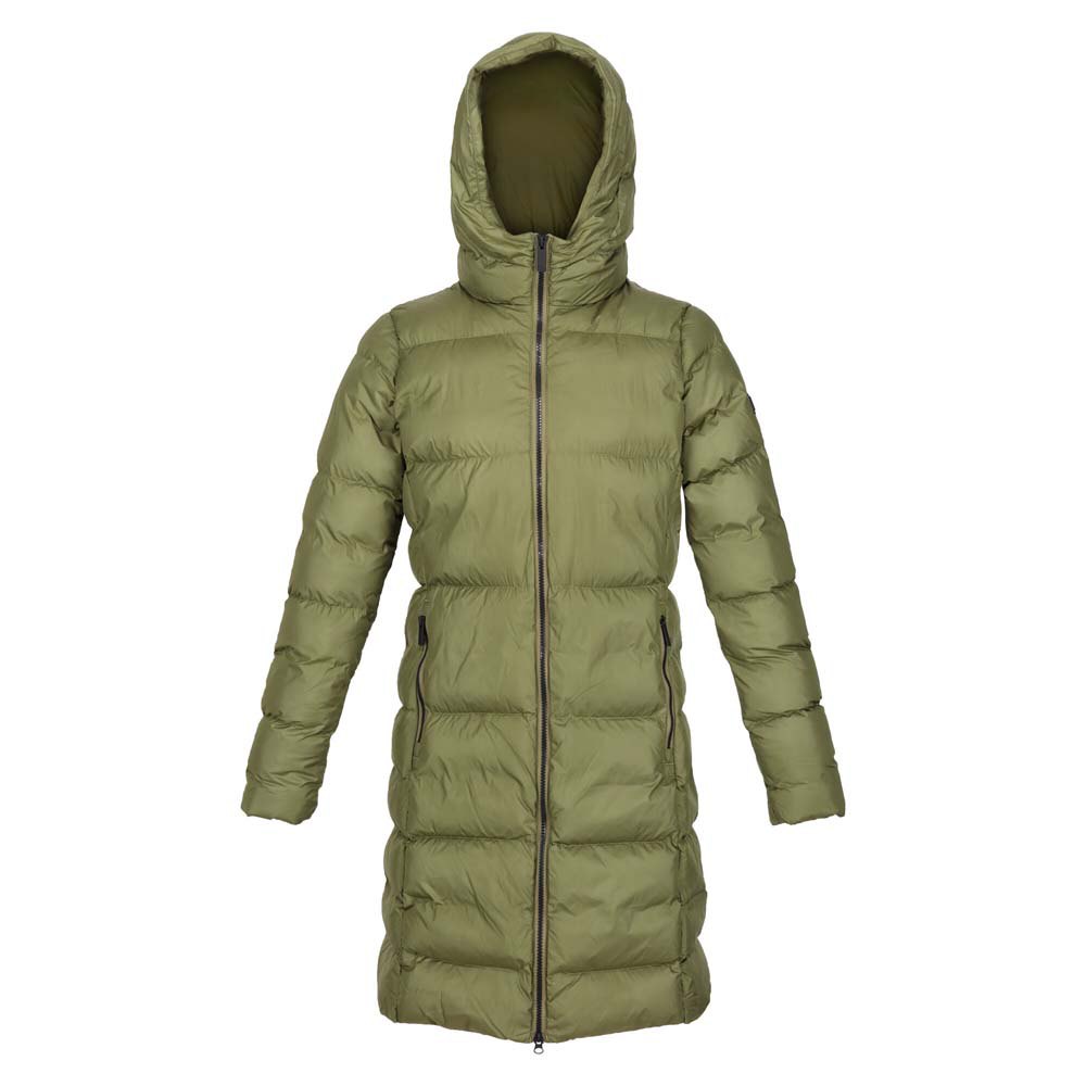 Elegante, impermeável e isolante, o nosso casaco de inverno feminino Andia irá mantê-lo na moda. Com um design de comprimento longo, a jaqueta feminina irá mantê-lo protegido em seus passeios. Há um revestimento repelente de água para ver as chuvas leves e um isolamento sem penas para mantê-lo aquecido. Acabamento com elegante detalhe acolchoado.