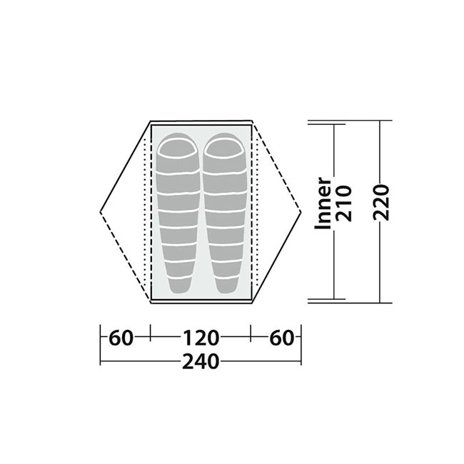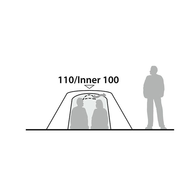 A combinação do estilo de cúpula e da coluna curta oferece espaço flexível para viver, cozinhar e armazenar, com excelente altura e largura interna, permitindo que dois ocupantes se sentem lado a lado. As portas duplas permitem a cada campista fácil acesso e opções de abertura de porta para proteção contra vento e ventilação cruzada. As pontas de travamento e os ilhós duplos em uma tira resistente prendem os postes internos ao poste da cumeeira.