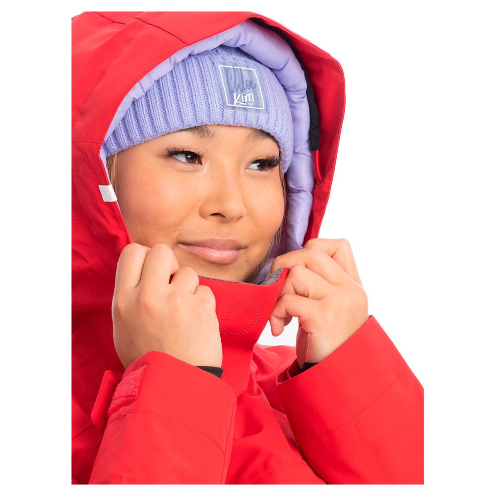 Clipe de chave, sistema de retenção do capuz, saia de tafetá fixa, sistema de saia de pó snap-away, sistema de fixação de jaqueta à calça, ventilação nas axilas forradas de malha, polainas de pulso elásticas internas com orifício para o polegar, ajustador de punho de manga, protetor de queixo, tecnologia ROXY HydroSmart integrado na gola, ajustador de cintura interno.