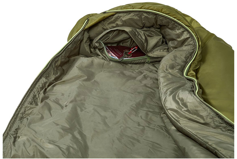 Este saco de dormir bem projetado com gola térmica não tem costuras acolchoadas – então o preenchimento mantém seu loft e os pontos frios são eliminados. O design sem costuras também evita a infiltração de umidade. O saco de dormir foi feito de materiais 100% reciclados e também é perfeito para quem tem pele sensível.