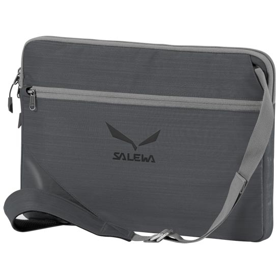 Bolsa acolchoada Salewa para laptop. Tem uma alça de ombro removível e área de fixação. Ele cabe em um laptop de 15 polegadas e é feito de tecido credenciado pela Bluesign®.