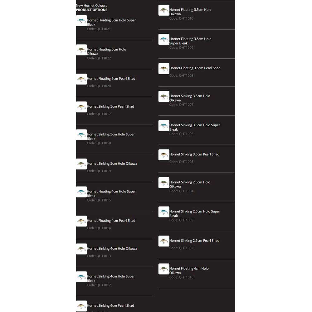 Desde o momento em que foi apresentado à família Salmo, tem sido o best-seller absoluto. A combinação perfeita de construção e equilíbrio cria uma ação incrível que os peixes acham irresistível. Se você está procurando uma isca que possa pegar qualquer coisa que nade na água, então a HORNET é sua melhor escolha. O modelo flutuante é a melhor isca para pescar em locais rasos e ao redor da estrutura, com muitas tomadas ocorrendo na pausa quando a isca sobe. A versão de afundamento desta isca clássica é perfeita para marcas de água mais profundas, quando você precisa colocar a isca para alimentar os peixes.