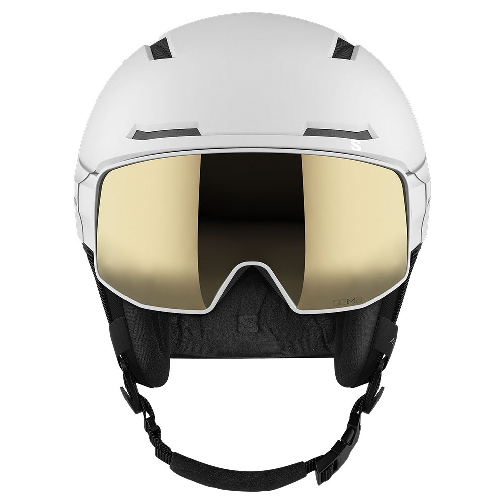 Uma viseira perfeitamente integrada com lente SIGMA amplia sua visão, enquanto o ajuste fácil e os recursos de segurança exclusivos da Salomon mantêm você confortável e seguro.