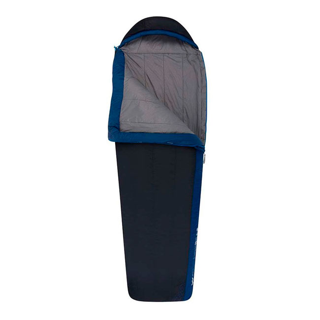 Seu formato retangular cônico oferece mais espaço e conforto do que uma bolsa múmia tradicional, enquanto o zíper lateral completo permite que ela seja aberta e usada como colcha. Um segundo controle deslizante com zíper no apoio para os pés proporciona ventilação adicional e ajuste versátil de temperatura.