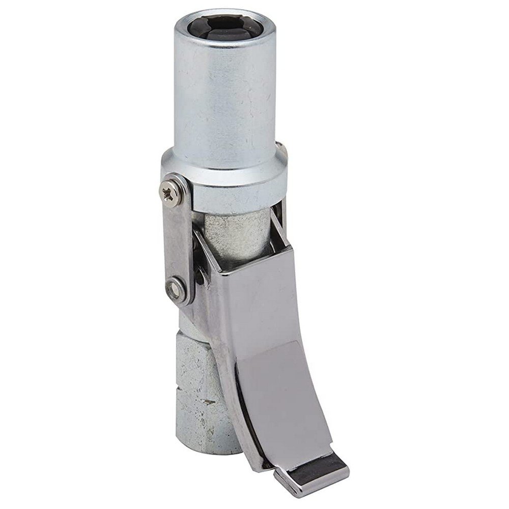 O design inovador permite que o acoplador de liberação rápida trave firmemente na graxeira, permitindo a lubrificação sem as mãos.