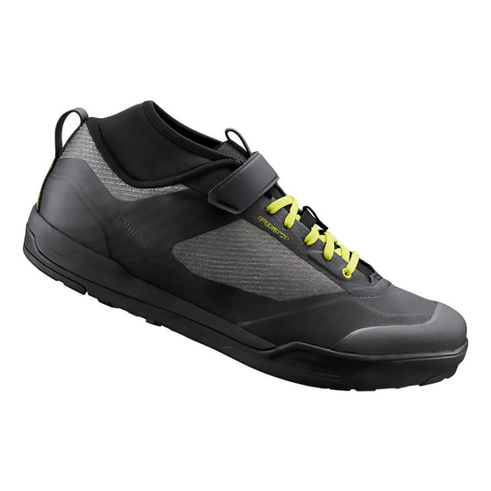 As sapatilhas de gravidade MTB SH-AM7L são feitas de um material composto que oferece máxima durabilidade. Absorve menos umidade e seca rapidamente. Uma sola de borracha antiderrapante melhora a capacidade de caminhar e é elevada nas laterais para proteção adicional.