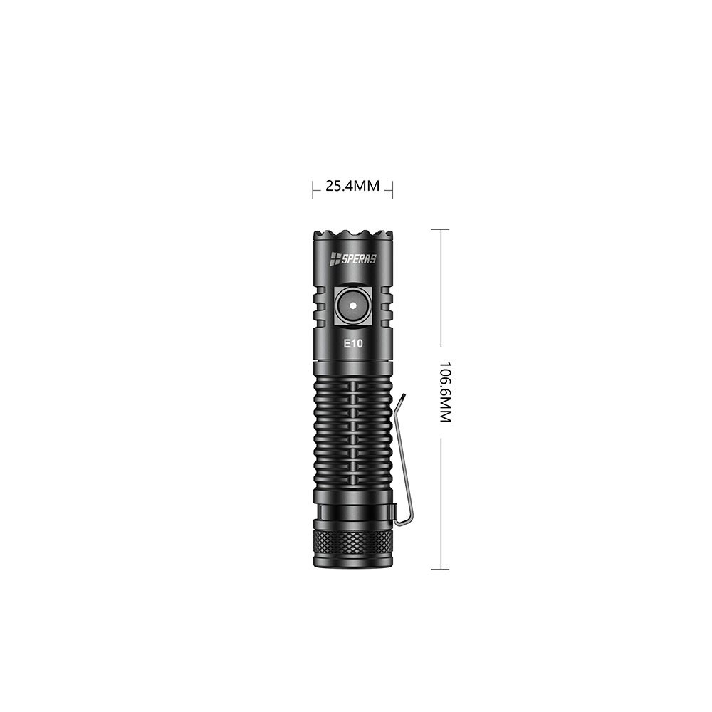 Inclui: holofote E10, bateria de lítio 3100mAh 18650, cabo de carregamento USB-C, 2 O-rings sobressalentes, manual, cordão de cinto, clipe de cinto e adaptador de energia USB-C para USB use o foco como um powerbank.