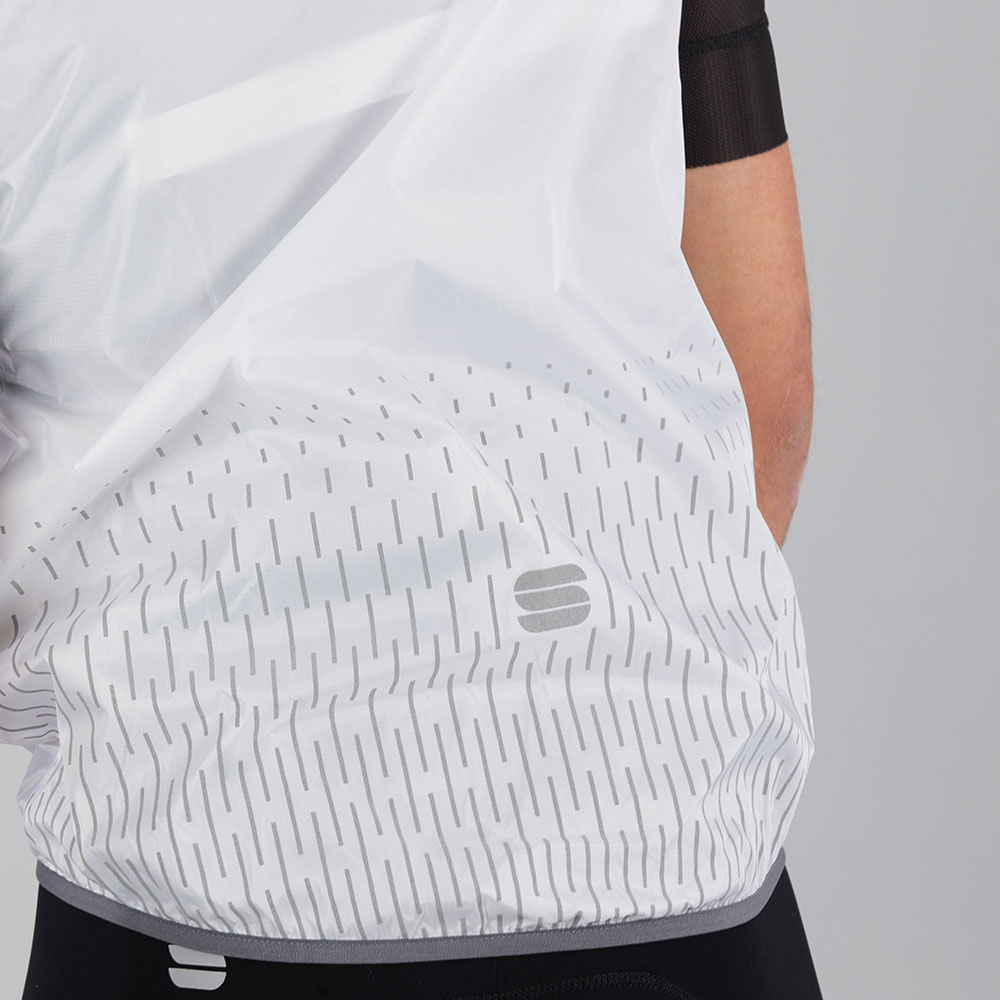 O Reflex Vest é construído como a jaqueta correspondente, só que sem mangas. É adequado para passeios de verão, quando não há ameaça de chuva e as temperaturas são agradáveis. Melhor ajuste, novo padrão refletivo, mesma proteção contra vento e chuva.