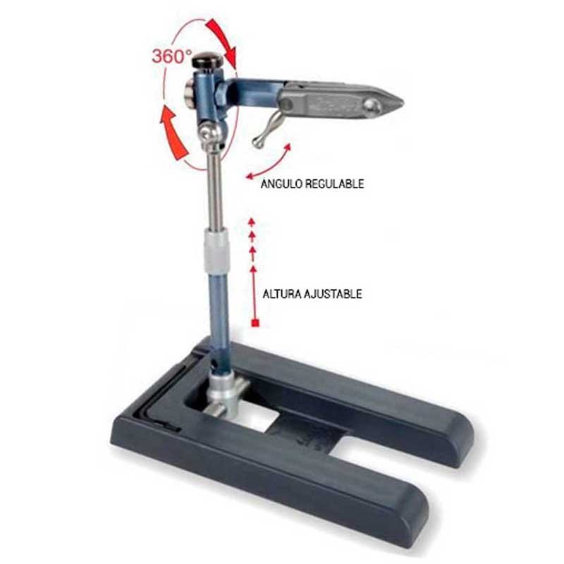 A cabeça tem ângulo ajustável, ação giratória de 360° e altura ajustável.