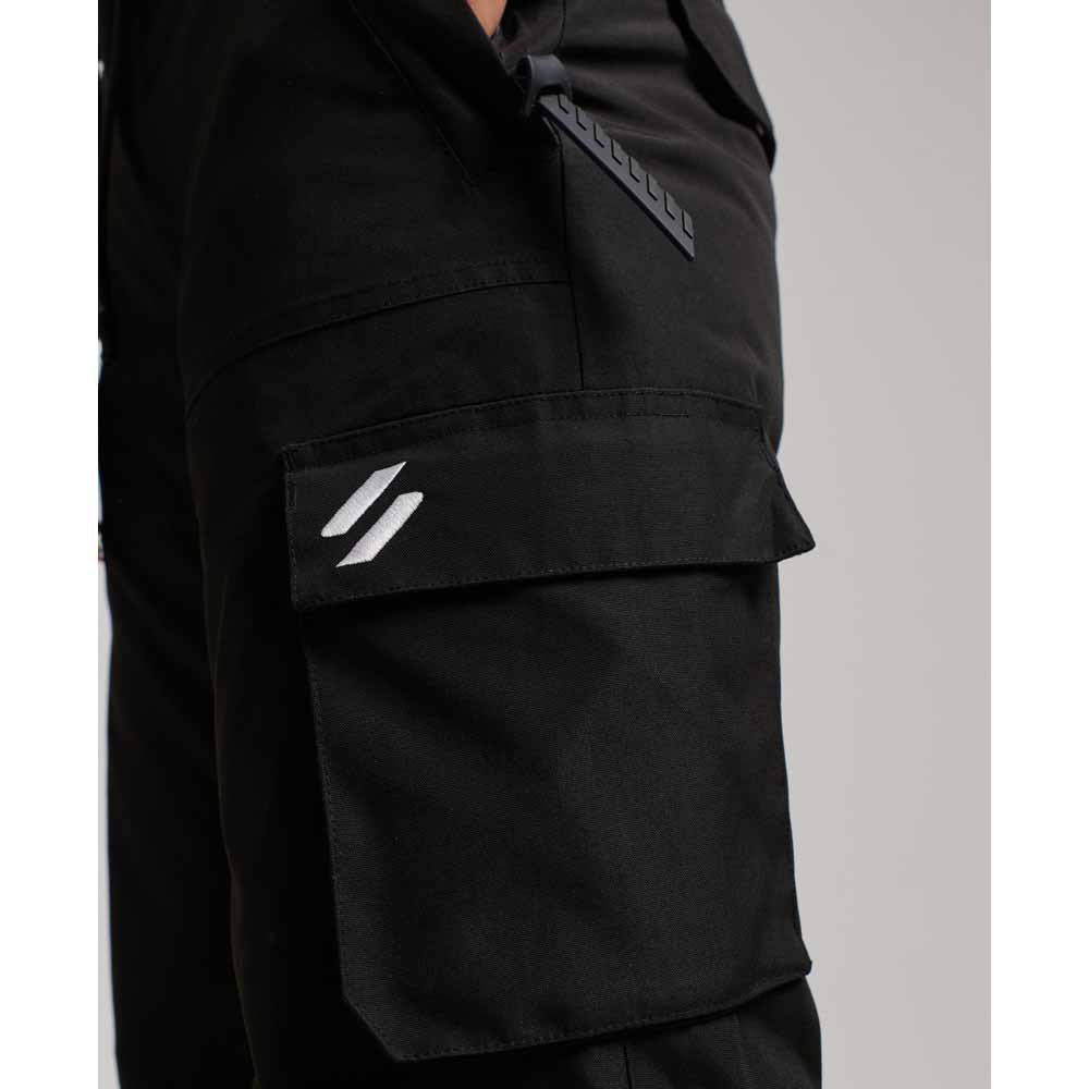 Possui dois bolsos laterais com zíperes que por sua vez servem para proporcionar maior ventilação ao corpo. Tem dois bolsos tipo cargo nas coxas. Possui detalhes refletivos em toda a peça para maior segurança.