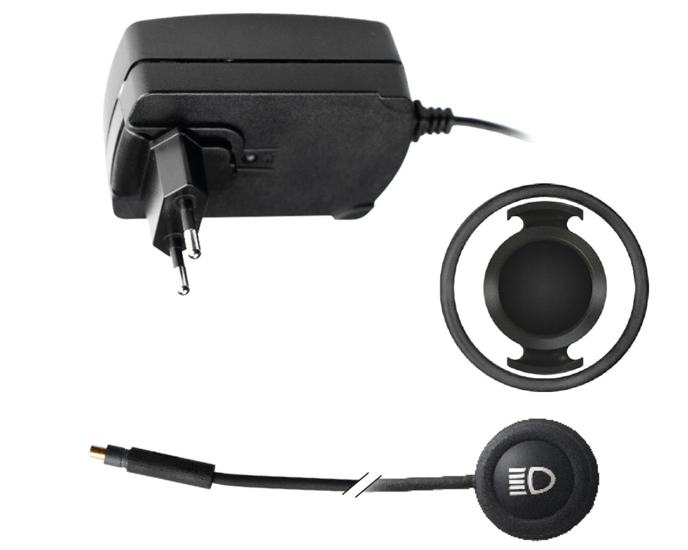 Interruptores integrados e compactos – o farol alto e a buzina do Supernova são fáceis de operar com o toque de um botão. Existem várias opções de suportes no guidão. O interruptor dos máximos é magnético e encaixa no respetivo suporte. A buzina Supernova tem um novo botão que ativa a buzina sem um relé de comutação.