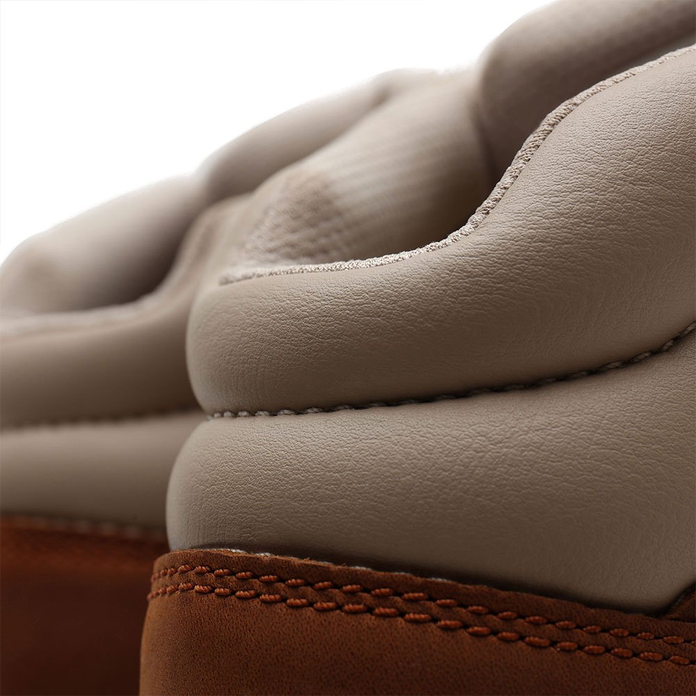 Graças à parte superior de couro Premium de grão integral, que oferece alto desempenho, durabilidade, resistência à abrasão e o revestimento PET 100% reciclado extra macio, protege seus pés, mesmo em superfícies molhadas e escorregadias. Além disso, os cadarços 100% de algodão orgânico oferecem um ajuste seguro e movimentos naturais dos pés.