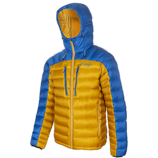 Chaqueta para actividades de montaña invernales. Con alta capacidad térmica. Relleno de pluma reciclada de pato 95/5 800 CUINS. Tratamiento de repelencia al agua libre de PFC.