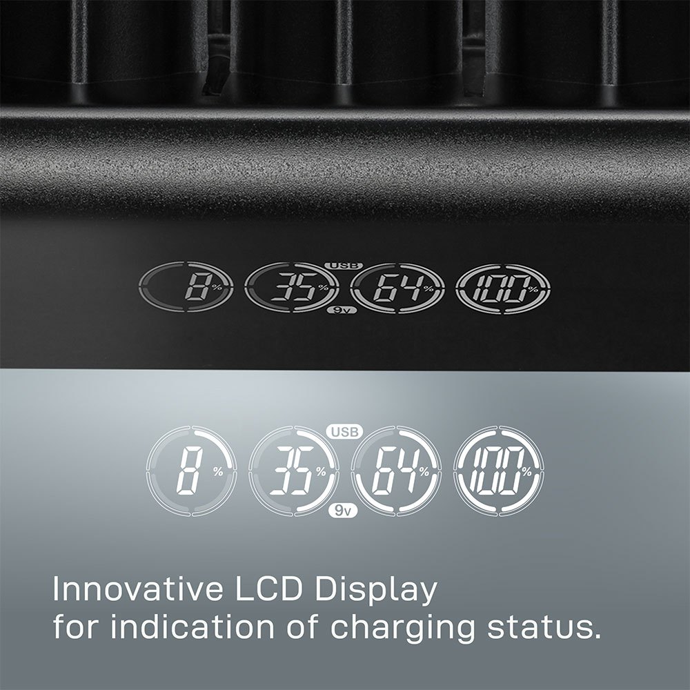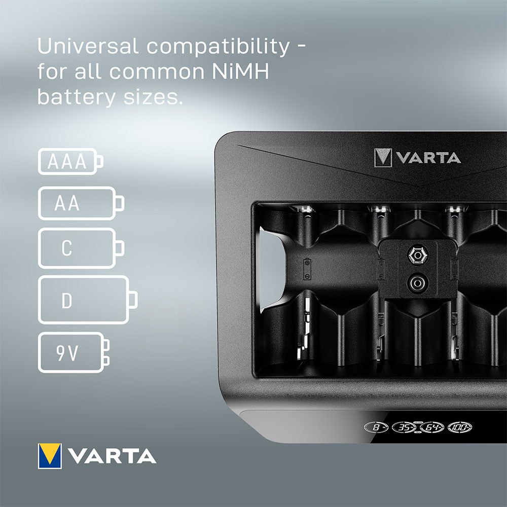 A confiável e versátil solução de carregamento! O carregador universal VARTA LCD pode carregar baterias recarregáveis AA / AAA / C / D e 9V NiMH. Os recursos de segurança abrangentes e a tela LCD de tamanho considerável indicando o nível de carga completam o LCD Universal Charger + para ser seu multifuncional confiável!
