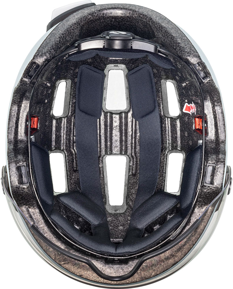 O EPS é espumado diretamente no invólucro de policarbonato resistente a impactos. Para uma construção de capacete tão leve quanto muito estável.