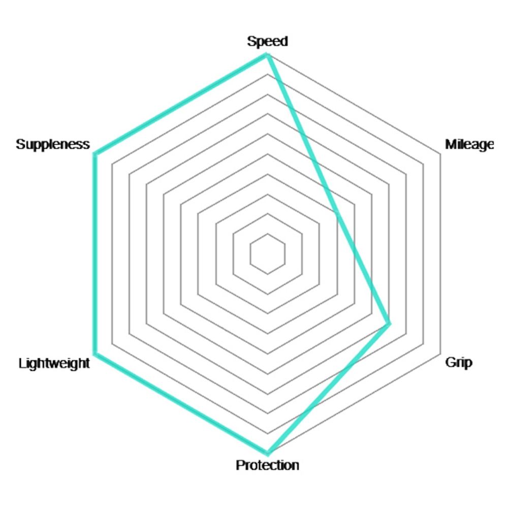 O resultado final é um pneu que mantém a menor resistência ao rolamento, ao mesmo tempo em que oferece a flexibilidade da marca registrada Corsa e excelente aderência em clima úmido.